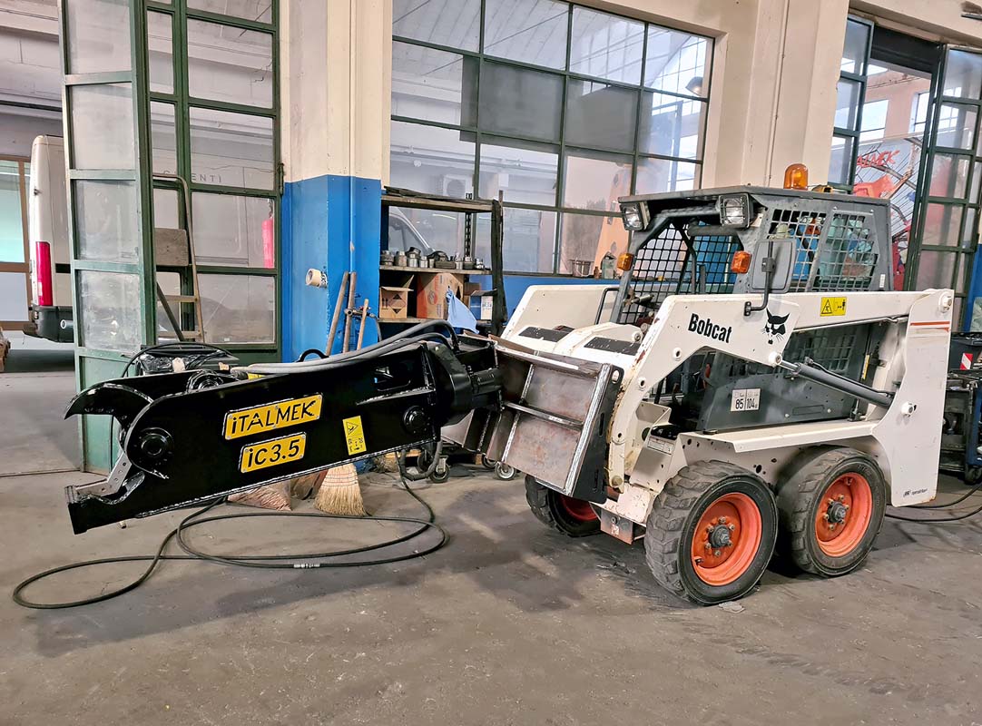 La cisaille IC3.5 peut être monté sur des mini-pelles de 3 à 6 tonnes de poids. Avec une pression de 227 bar coupe un fer ronde plein de 35 mm.